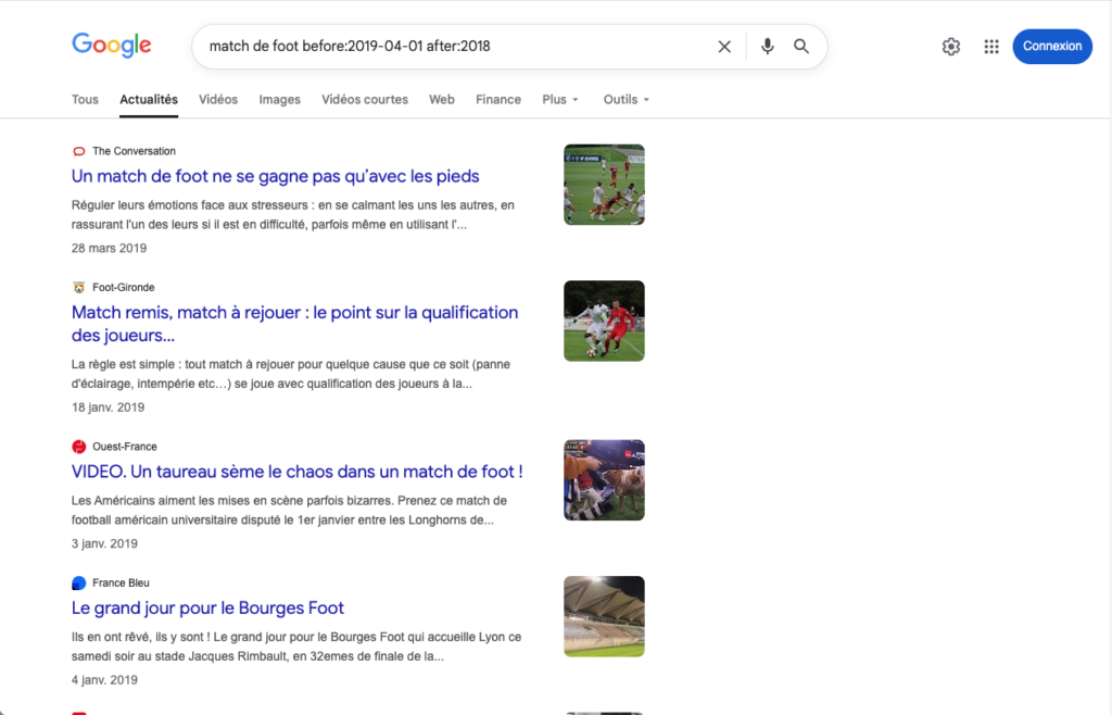 Exemple :match de foot before:2019-04-01 after:2018