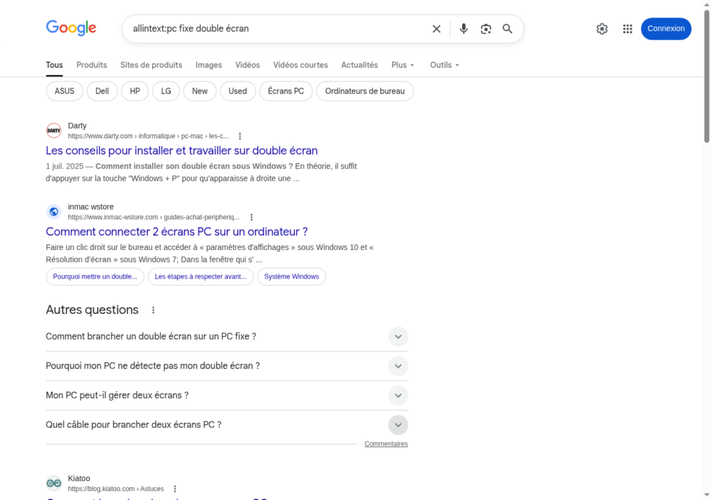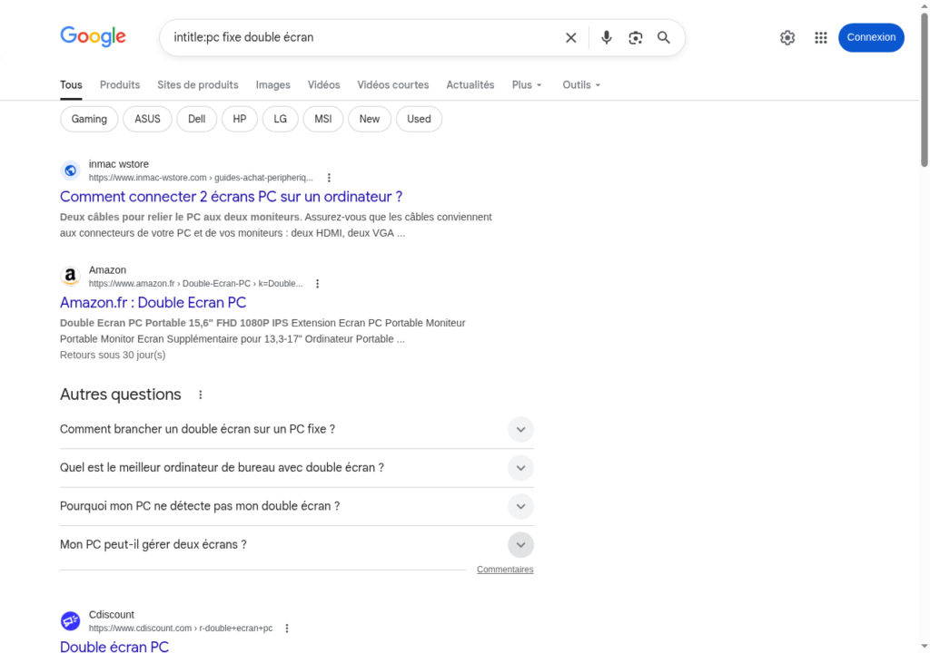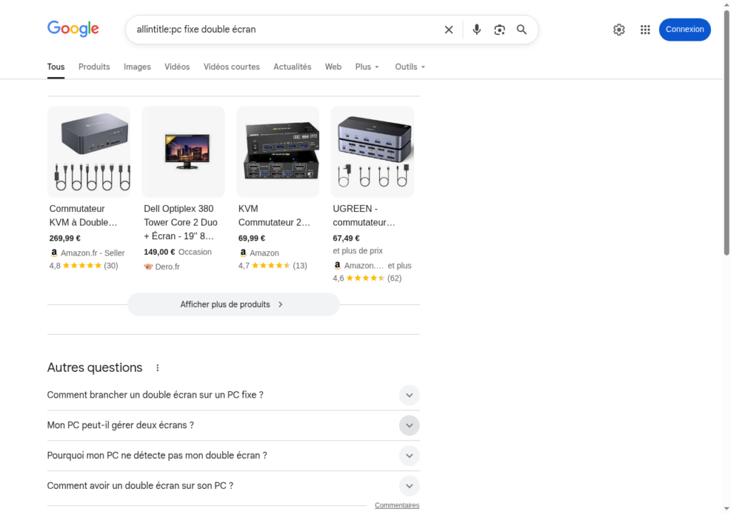 Exemple :allintitle:pc fixe double écran