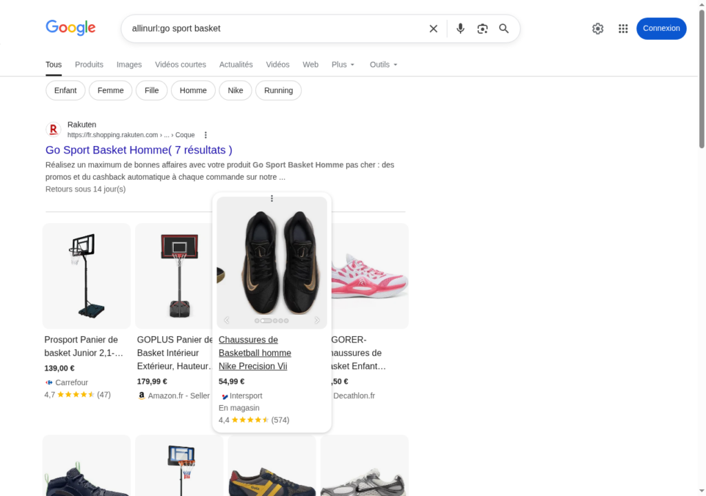 Exemple :inurl:go sport basket