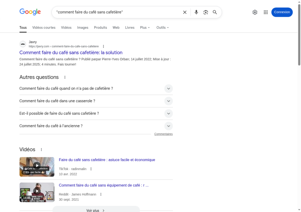Exemple :"comment faire du café sans cafetière"